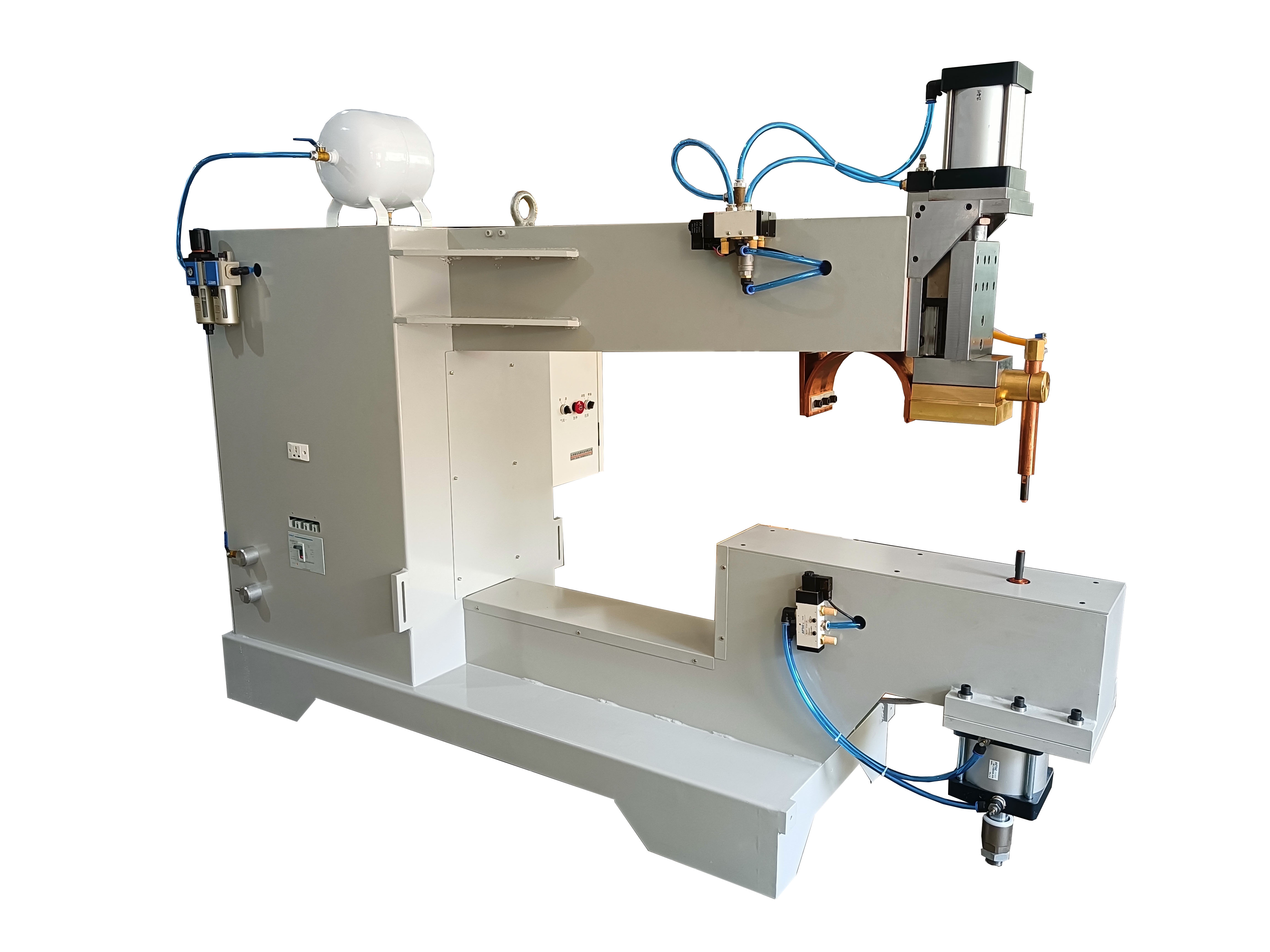 縫焊機就是指焊件裝配成搭接或對接接頭并放置于兩滾輪電極中間,滾輪電極加壓焊件并旋轉,連續或斷續脈沖送電,形成一條連續焊縫的電阻焊機器。可以說,縫焊機是點焊中的一種演變。